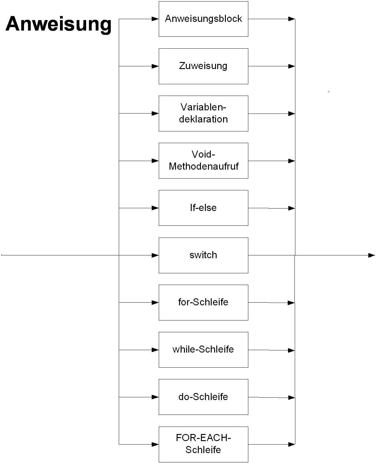Dabei ist Expression ein Wert vom Typ boolean, wie er typischerweise durch einen Vergleich entsteht. Statement ist eine Anweisung. Das kann eine einfache Anweisung oder ein Anweisungsblock sein.